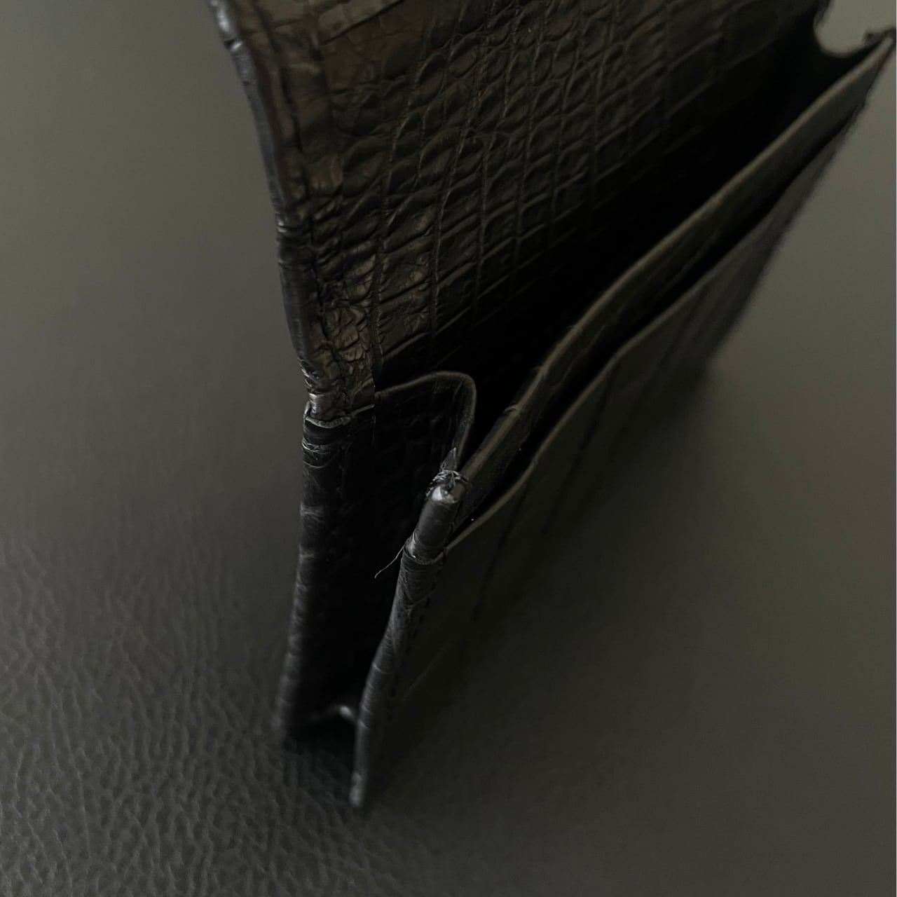 内面:ナイルクロコダイル(マット)、サテンシャンタン(耐久性を要する裏地部分)